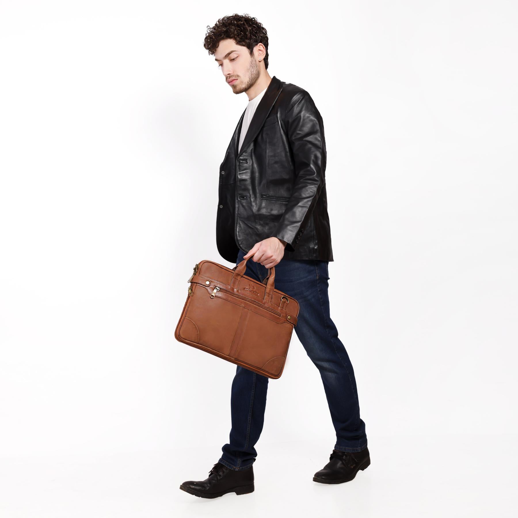 Upgrade your everyday carry with this premium, water-resistant PU leather bag, designed for both style and longevity. It features a classic tan finish, sturdy handles, and a detachable, adjustable shoulder strap for comfort and convenience.