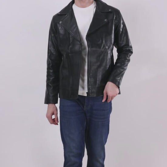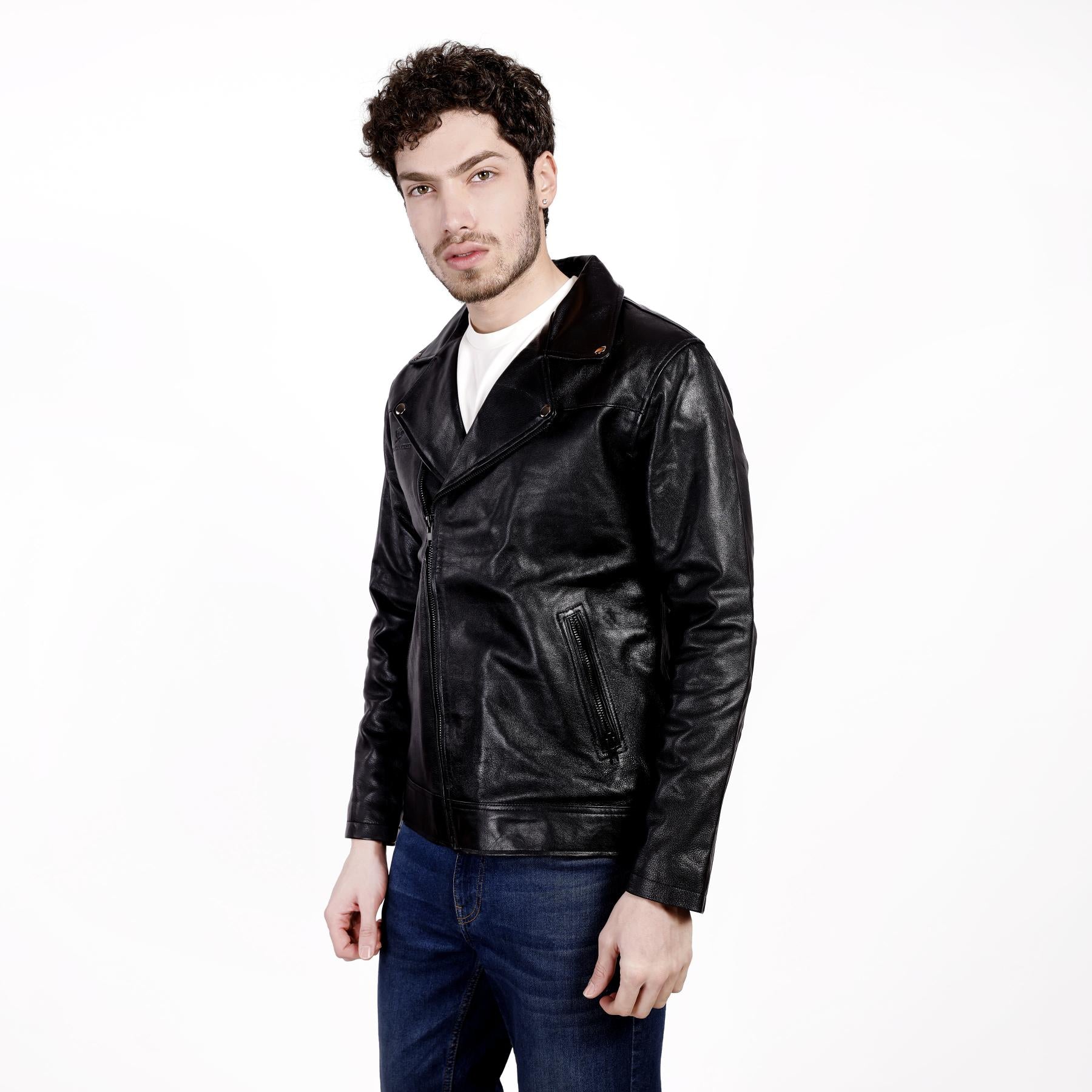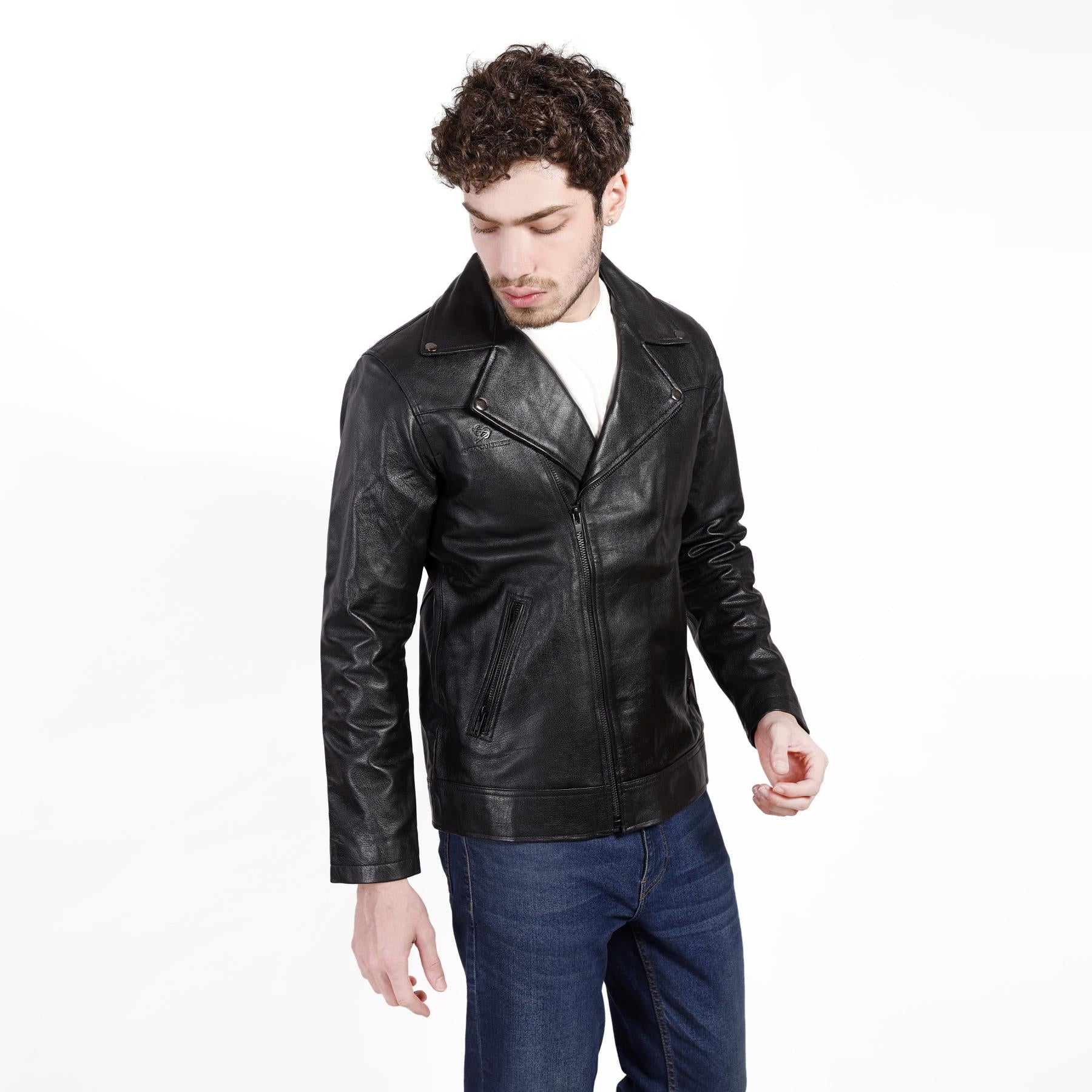 A sleek, streamlined take on the motorcycle jacket. The clean, off-center front zipper emphasizes a lean, modern silhouette. Minimal hardware allows the quality and cut of the premium leather to take center stage for a refined, modern rebel.